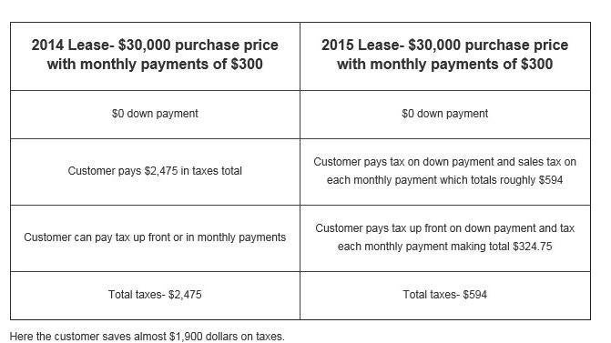 Prior to 2015, a customer would pay tax on the purchase price of the car, even though a lease acts as a long-term rental. This made leasing a car unappealing. Nationally the lease rate is right around 26%, but in Illinois it has been only 14%. Chicago is even lower than that, at only 8% of all vehicle sales being leases. New York, for example, has a nearly 50% lease rate. The new law states that a customer only has to pay taxes on the down payment and subsequent monthly payments.