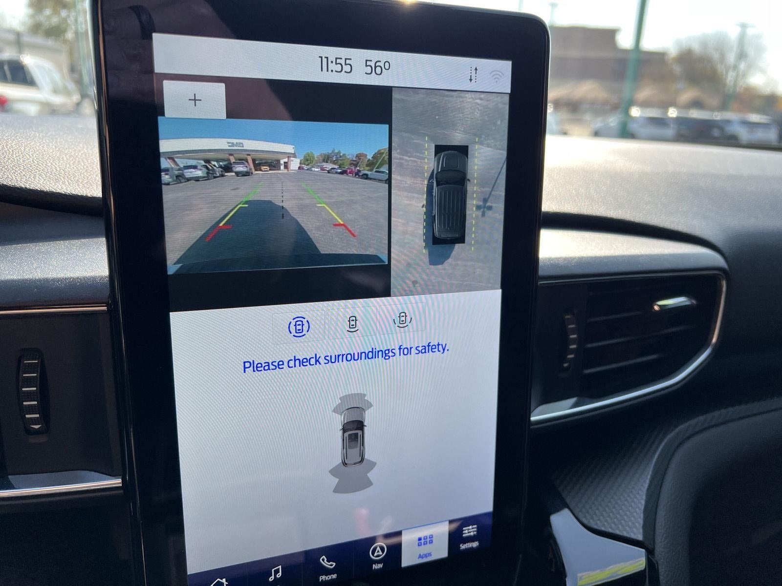 - The vehicle is equipped with a camera that displays an image of the area behind the vehicle on an interior display.