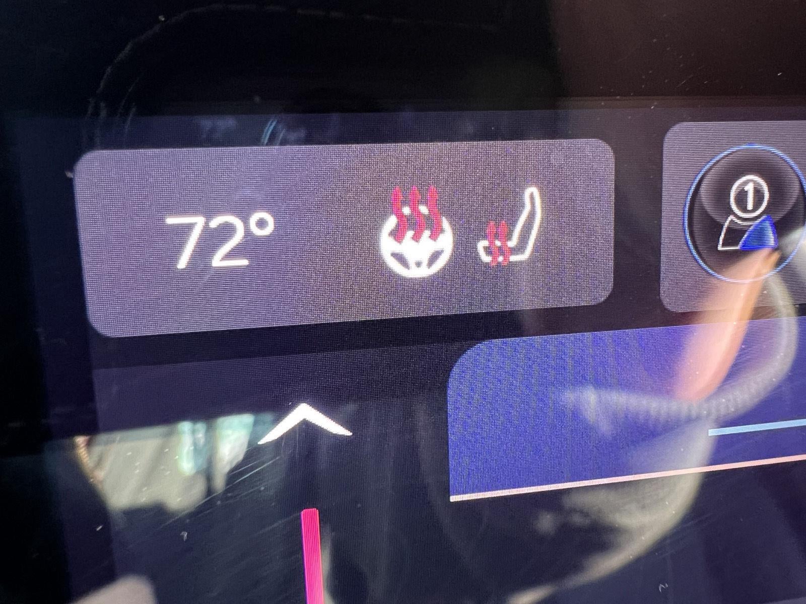 - The steering wheel rim is heated.